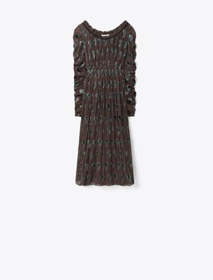 Giorgio Armani stretch velvet dress with gathering and draping detail Approx. length: 35″ from shoulder to hem High neckline Cap sleeves A-line silhouette Knee-length Invisible side zip Viscose/silk Silk, lining Dry clean Made in Italy Model is 5 & apos;10″/177cm, wearing US size 4.
